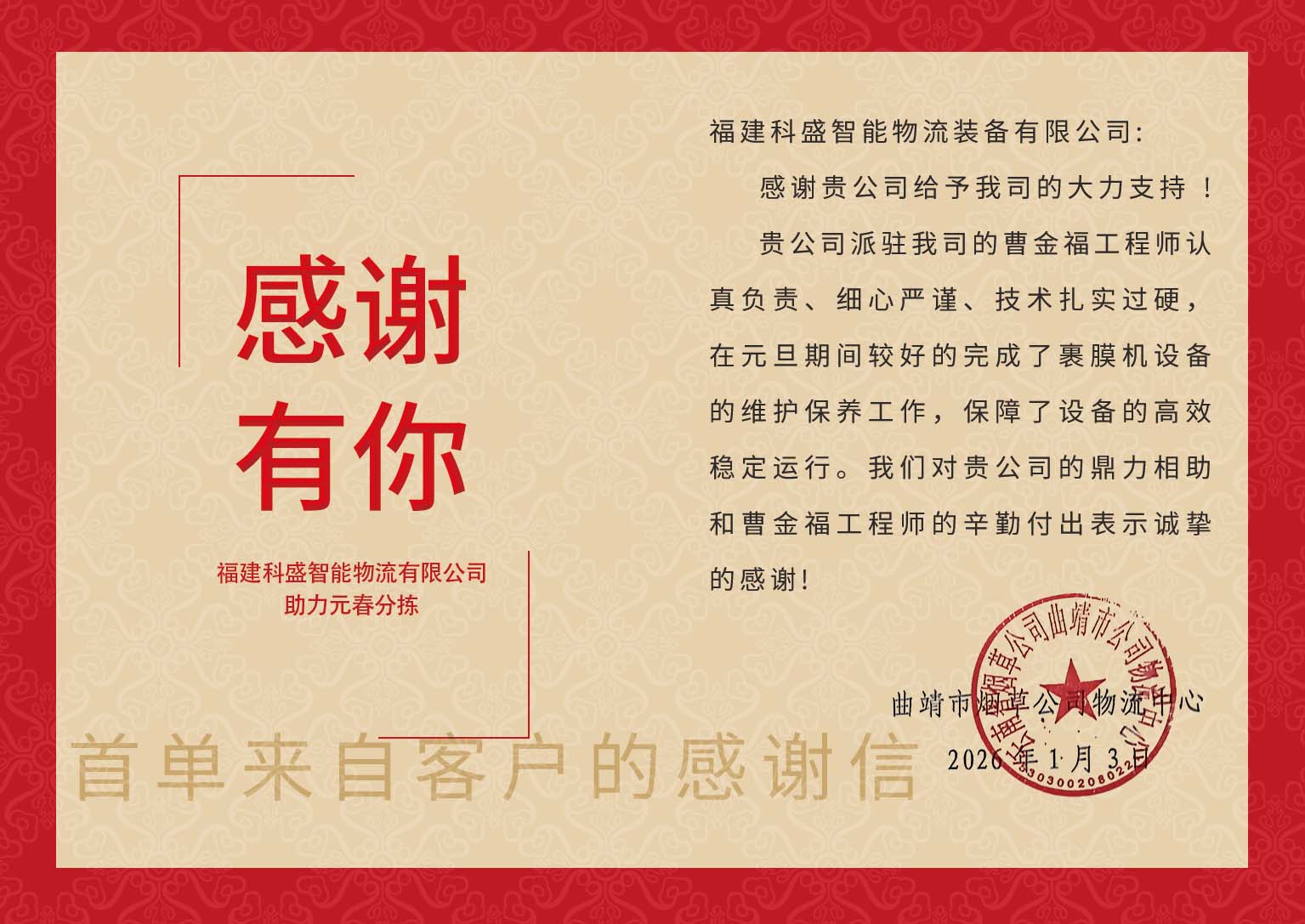 The special action for ensuring the spring supply in 2026 by Kesun has been deployed ahead of schedule and implemented precisely. By 0:00 on January 1, 2026, the Kesun engineer team had fully stationed at the sites of all cooperative tobacco companies nationwide. Adopting the "on-site service + immediate response" model, they provided full-process escort for the sorting operations of all cigarette product specifications. They initiated offline support and online nationwide brainstorming to address sudden equipment issues on site, laying a solid foundation for ensuring the smooth logistics of the spring supply.